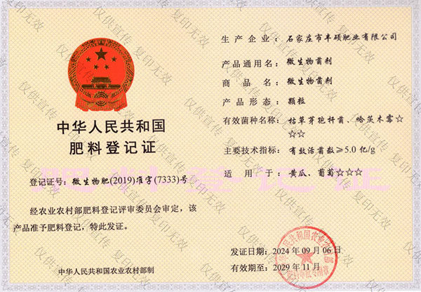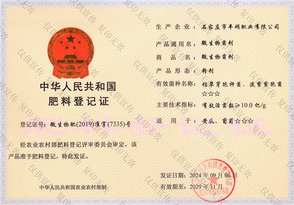 石家莊市豐碩肥業有限公司是一家集新型肥料的研發、制造、營銷、服務于一體的高新技術企業,公司自2008年創辦以來,一直致力于新型肥料的技術研發和市場推廣。公司組建了豐碩新型肥料研究中心(院士專家企業工作站),自主知識產權研發團隊專業科研人員20余人,獲得了多項肥料國家發明專利。公司目前已擁有發酵類有機肥、微生物菌劑、生物有機肥、土壤調理劑、大量元素水溶肥、含腐植酸肥料、含氨基酸肥料、中微量元素肥料等8大品類,“金維克”、“豐碩沃農”等2大自有品牌,擁有20多個暢銷品種。目前,我公司已經通過了“ISO9001 質量管理體系認證”、“ISO14001 環境管理體系認證”、“OHSAS18001 職業健康管理體系認證”。...